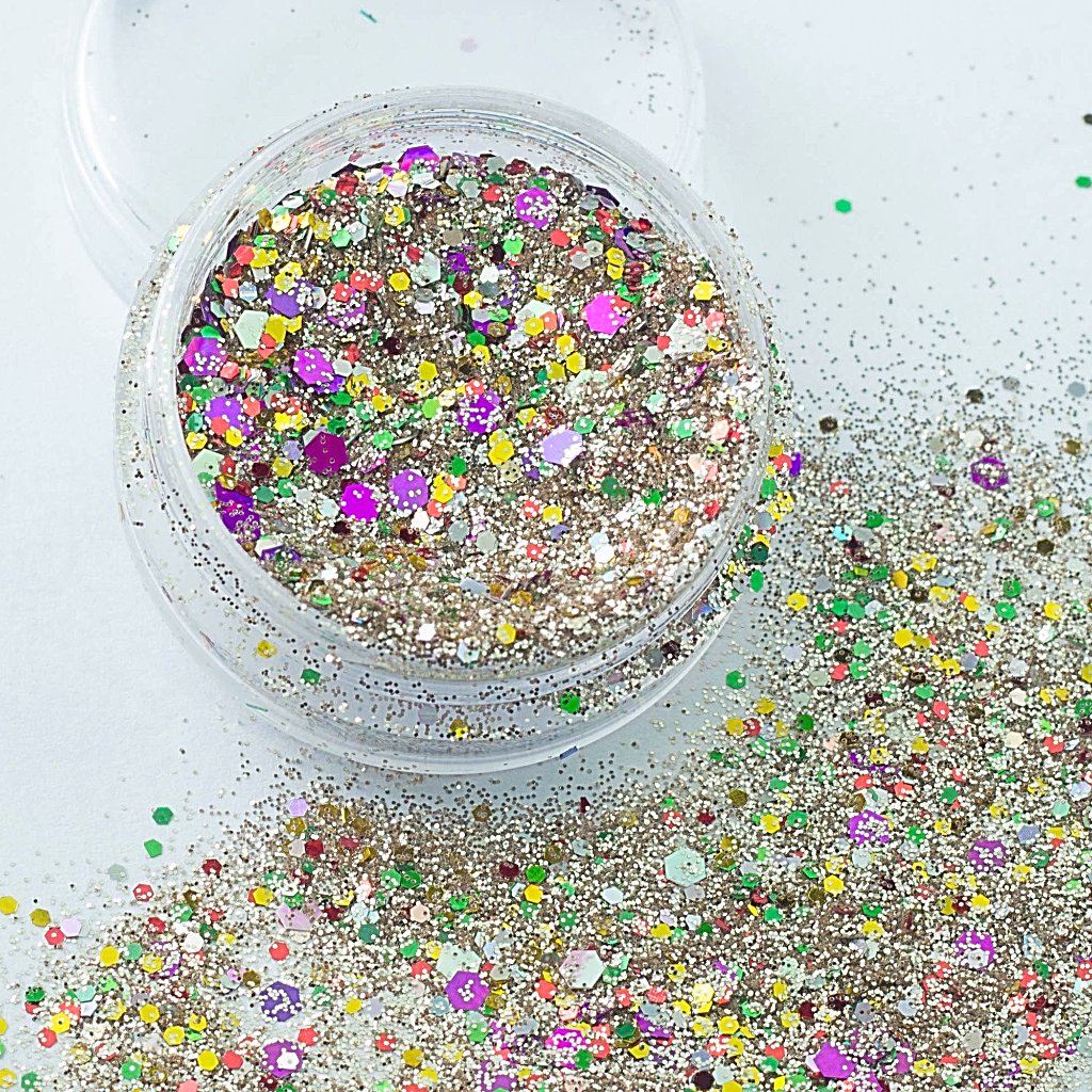 Beautiful glitter mixes in a wide variety of colours and styles - each is unique and comprised of a range of textures, shapes and sizes. They are literally bursting with colour and shine due to being super highly pigmented. Whatever look you are trying to achieve there really is something for everyone.