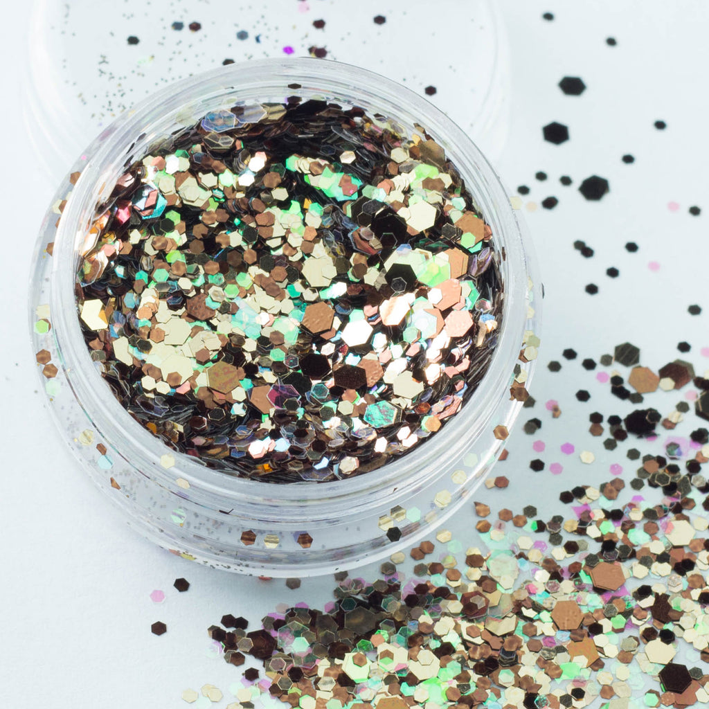 Chic autumnal browns and gold metallic colours with a little iridescent shimmer chunky glitter mix.