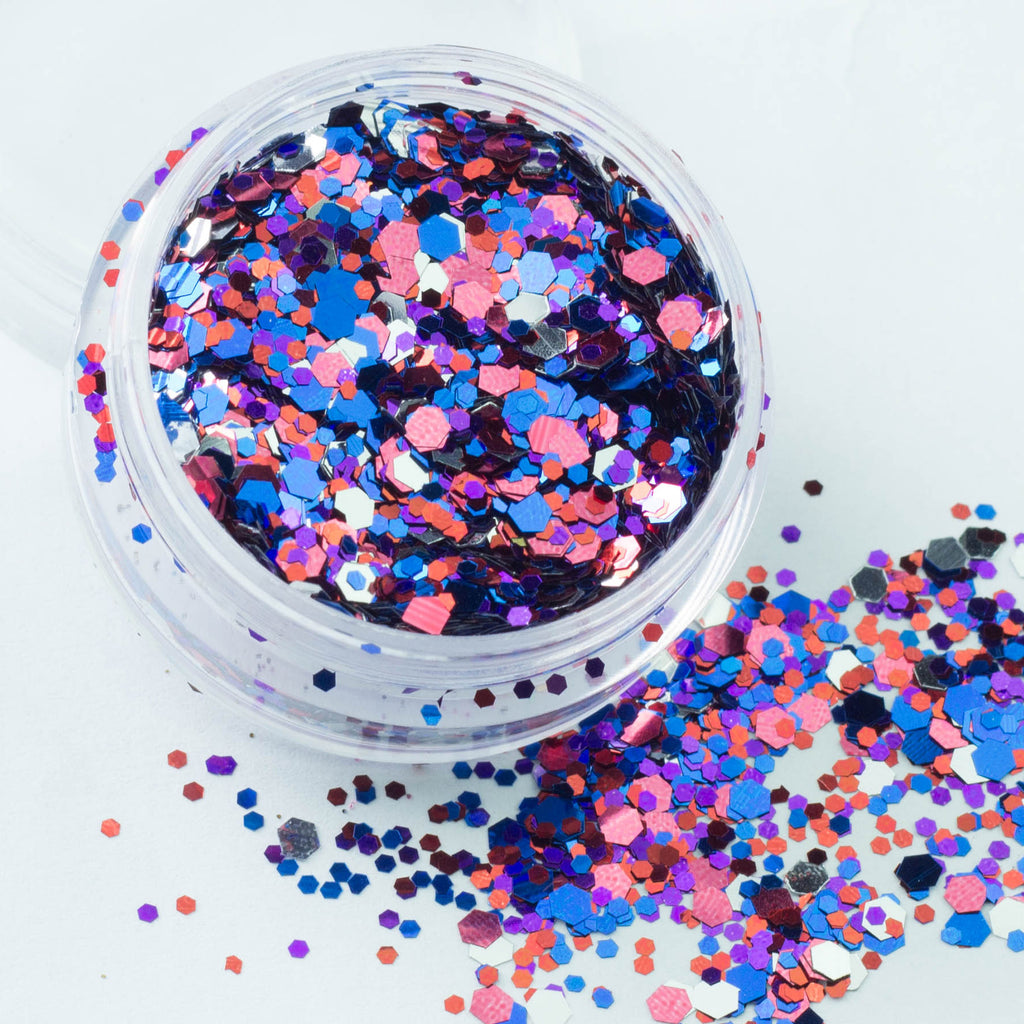 Beautiful glitter mixes in a wide variety of colours and styles - each is unique and comprised of a range of textures, shapes and sizes. They are literally bursting with colour and shine due to being super highly pigmented. Whatever look you are trying to achieve there really is something for everyone.