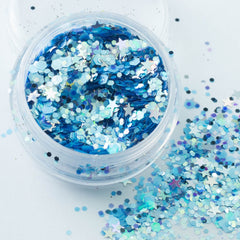 Shimmering iridescent blues with sparkling stars, chunky glitter mix.
