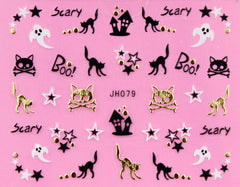 Halloween "Ghost, Cat" Gold /  Silver 3D Nail Arts Sticker Decals