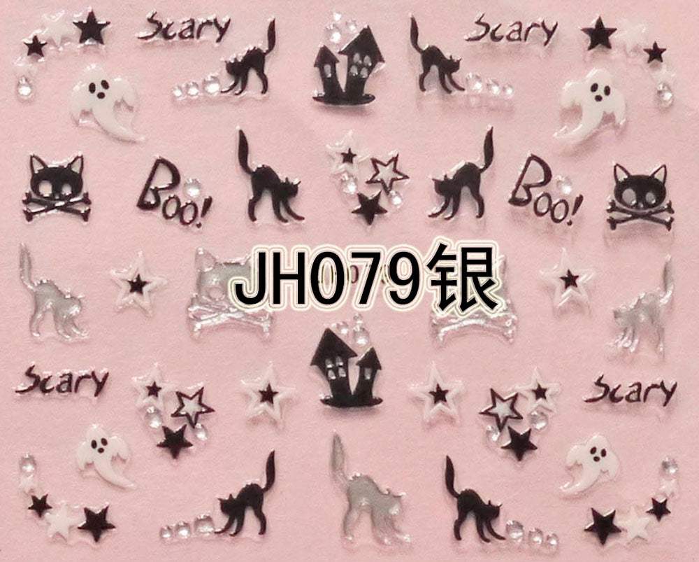 Halloween "Ghost, Cat" Gold / Silver 3D Nail Arts Sticker Decals