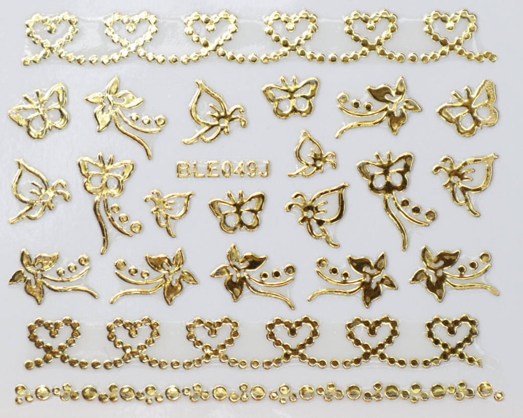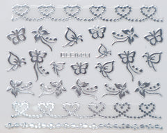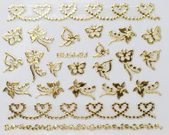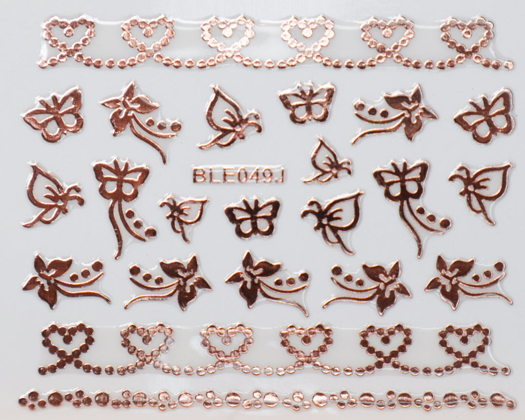 3D "Dotted Hearts, Butterflies" Metallic Stickers in Gold, Silver, Rose Gold