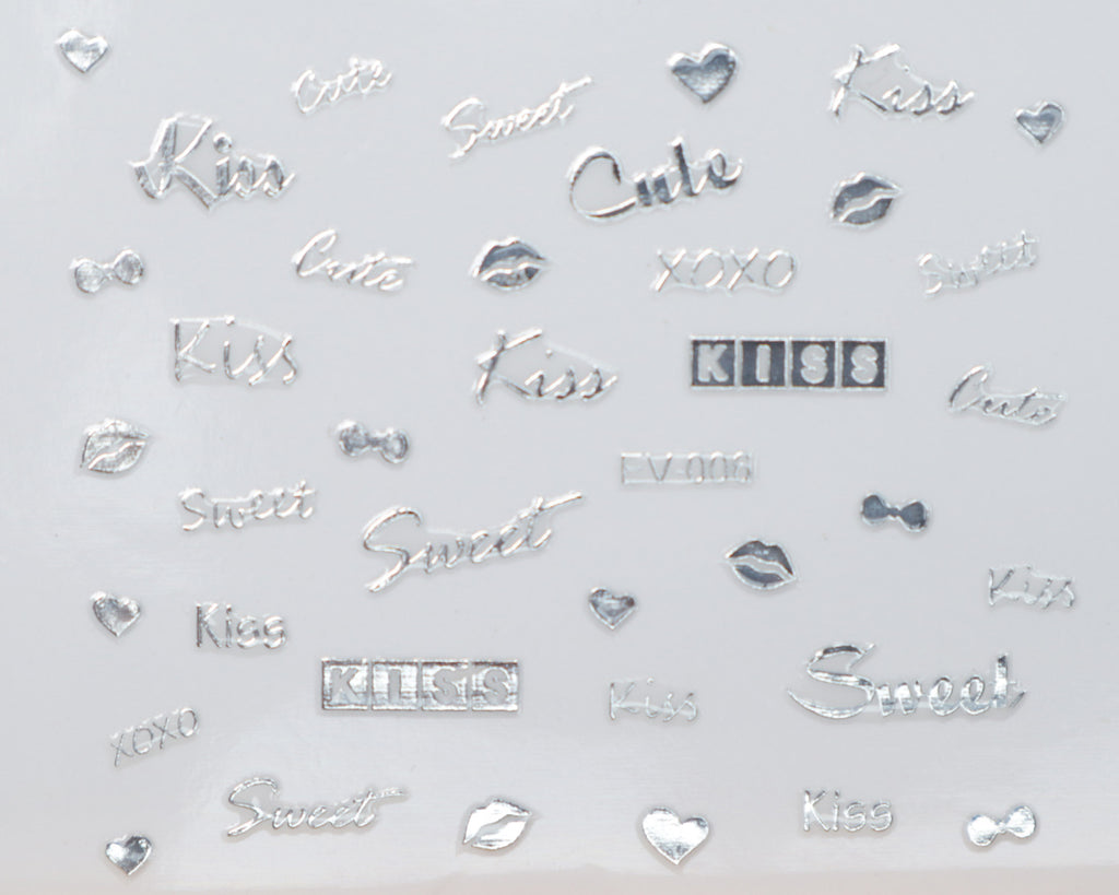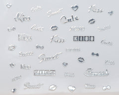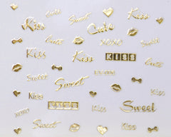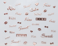 3D "Kiss, Sweet, Cute" Metallic Letter Stickers in Gold, Silver, Rose Gold