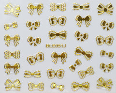 3D "Lace Bows" Metallic Stickers in Gold, Silver, Rose Gold