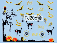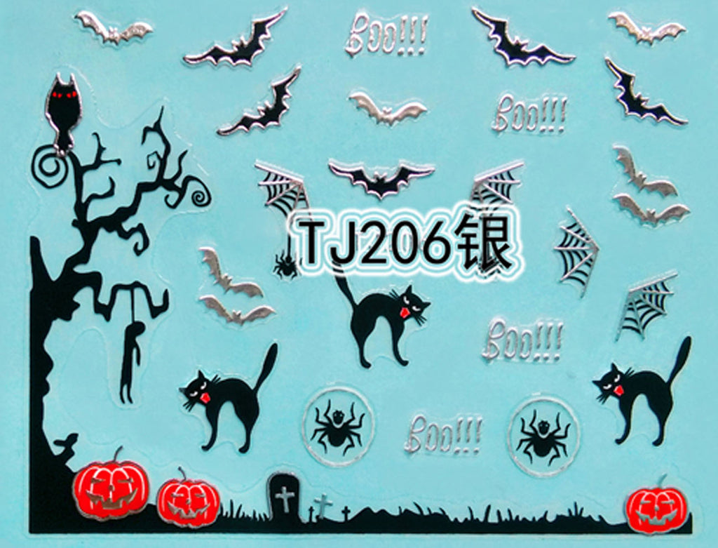 "Boo! Spider & Cat" Gold / Silver Colourful Halloween 3D Nail Arts Sticker Decals