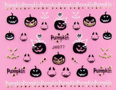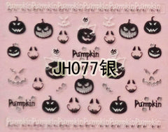 Halloween "Evil Pumpkin" Gold / Silver 3D Nail Arts Sticker Decals