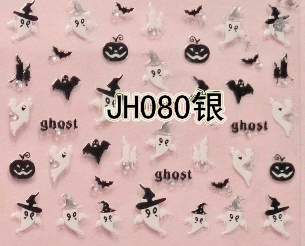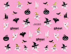 Halloween "Ghost with Hat" Gold /  Silver 3D Nail Arts Sticker Decals