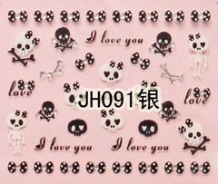 Halloween "Sugar Skull" Gold / Silver 3D Nail Arts Sticker Decals