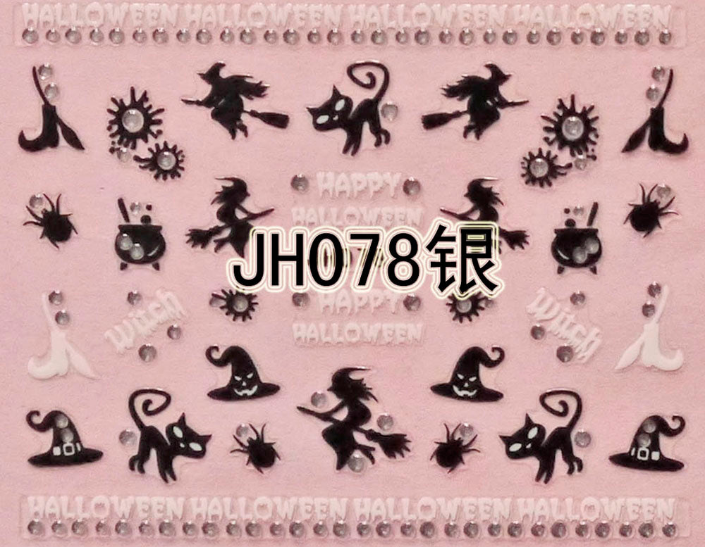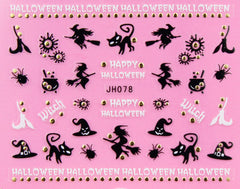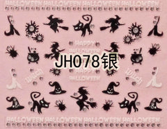 Halloween "Witch, Cat" Gold / Silver 3D Nail Arts Sticker Decals