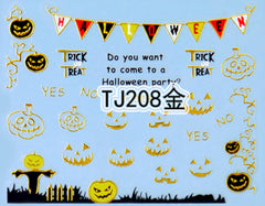 "Pumpkin Trick" Gold /  Silver Colourful Halloween 3D Nail Arts Sticker Decals