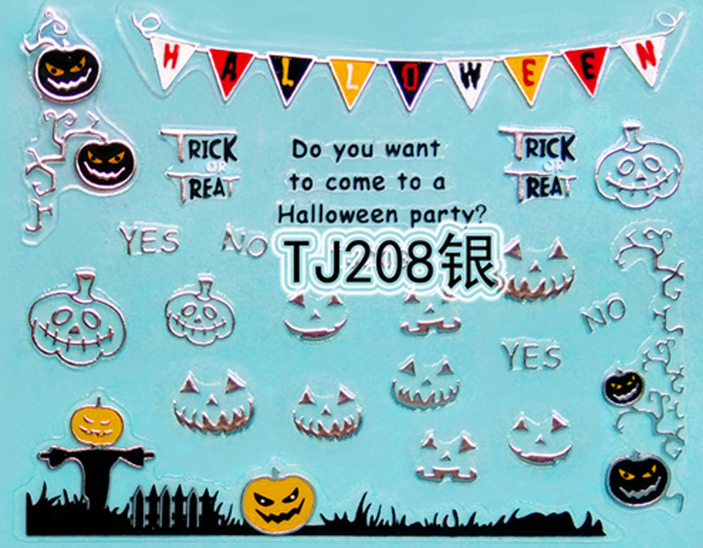 "Pumpkin Trick" Gold / Silver Colourful Halloween 3D Nail Arts Sticker Decals