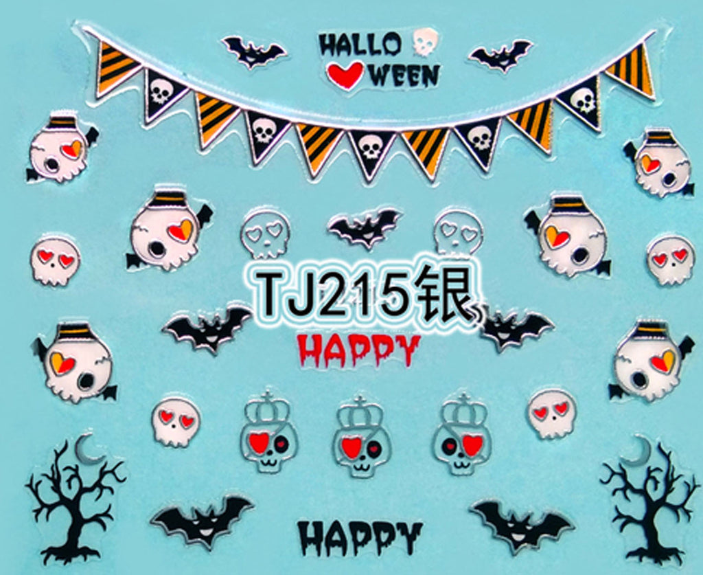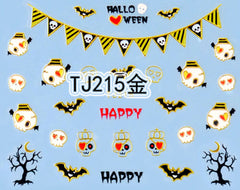 "Sugar Pirate Skull" Gold / Silver Colourful Halloween 3D Nail Arts Sticker Decals