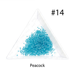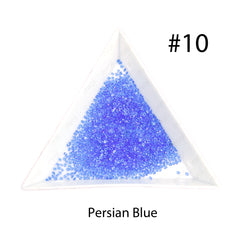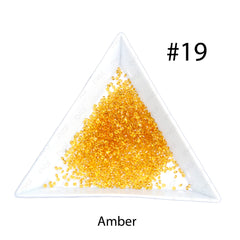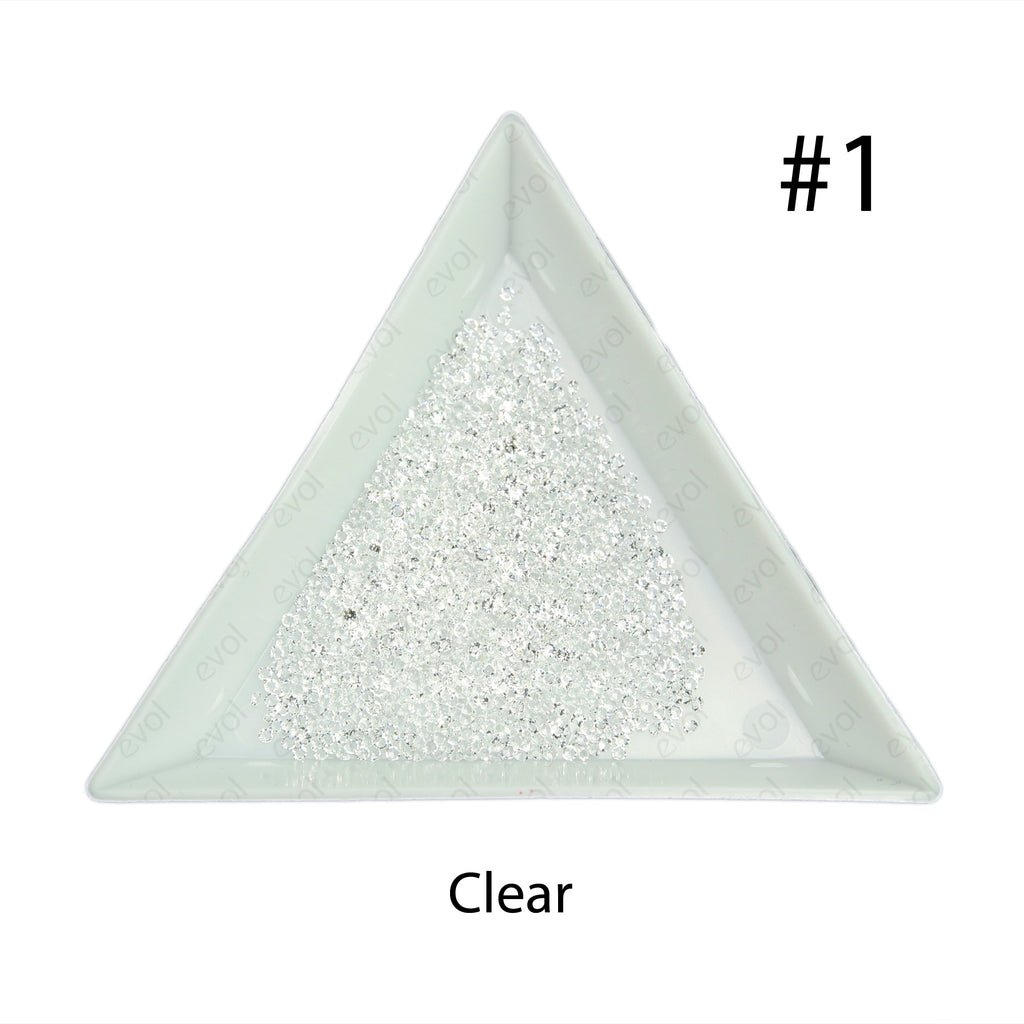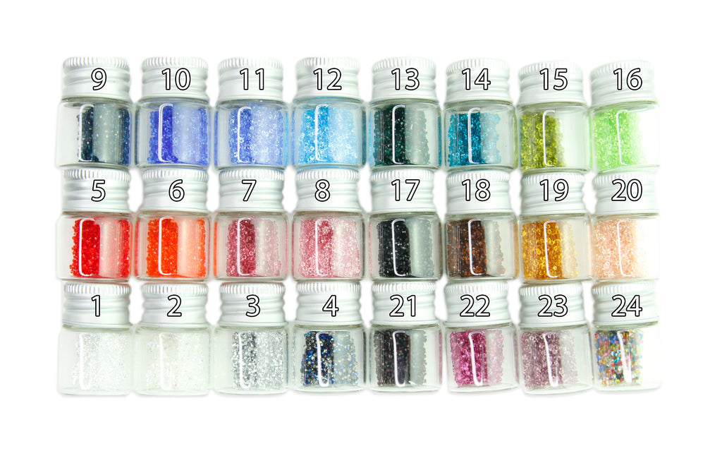 Come with 5ml clear glass bottle. As the crystal are very tiny, the actual product only fill 1/5 of the bottle.