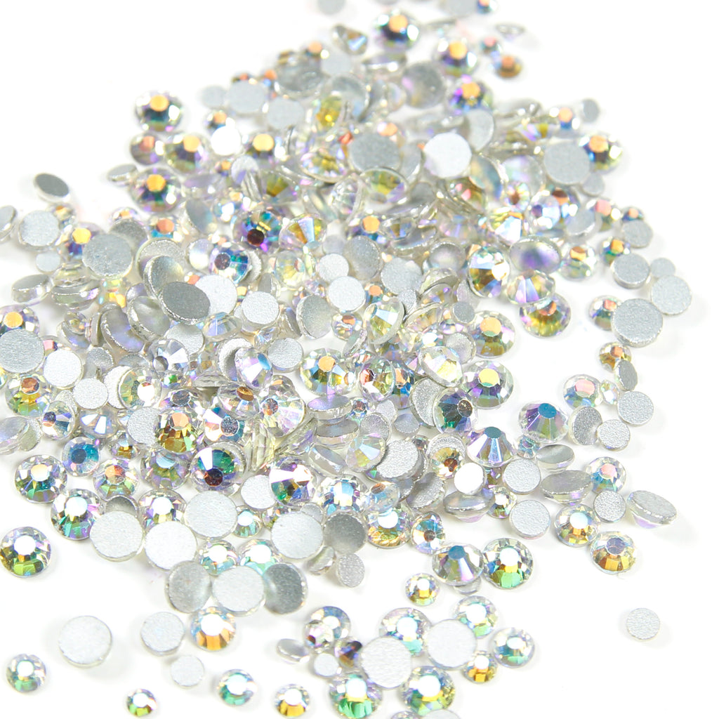 #13 AB Sparkle -- Light AB coating Clear gem, with silver bottom.