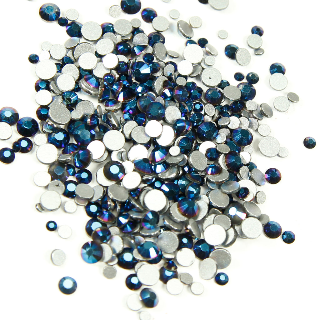 #17 Metallic Blue --?? Dark Metallic dark blue, solid gems with silver bottom. (metallic gems not resist of acid, finish with seal of wear and tear)