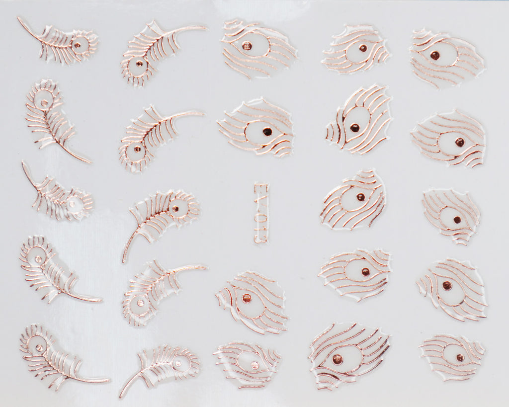 3D "Feathers" Metallic Stickers in Gold, Silver, Rose Gold